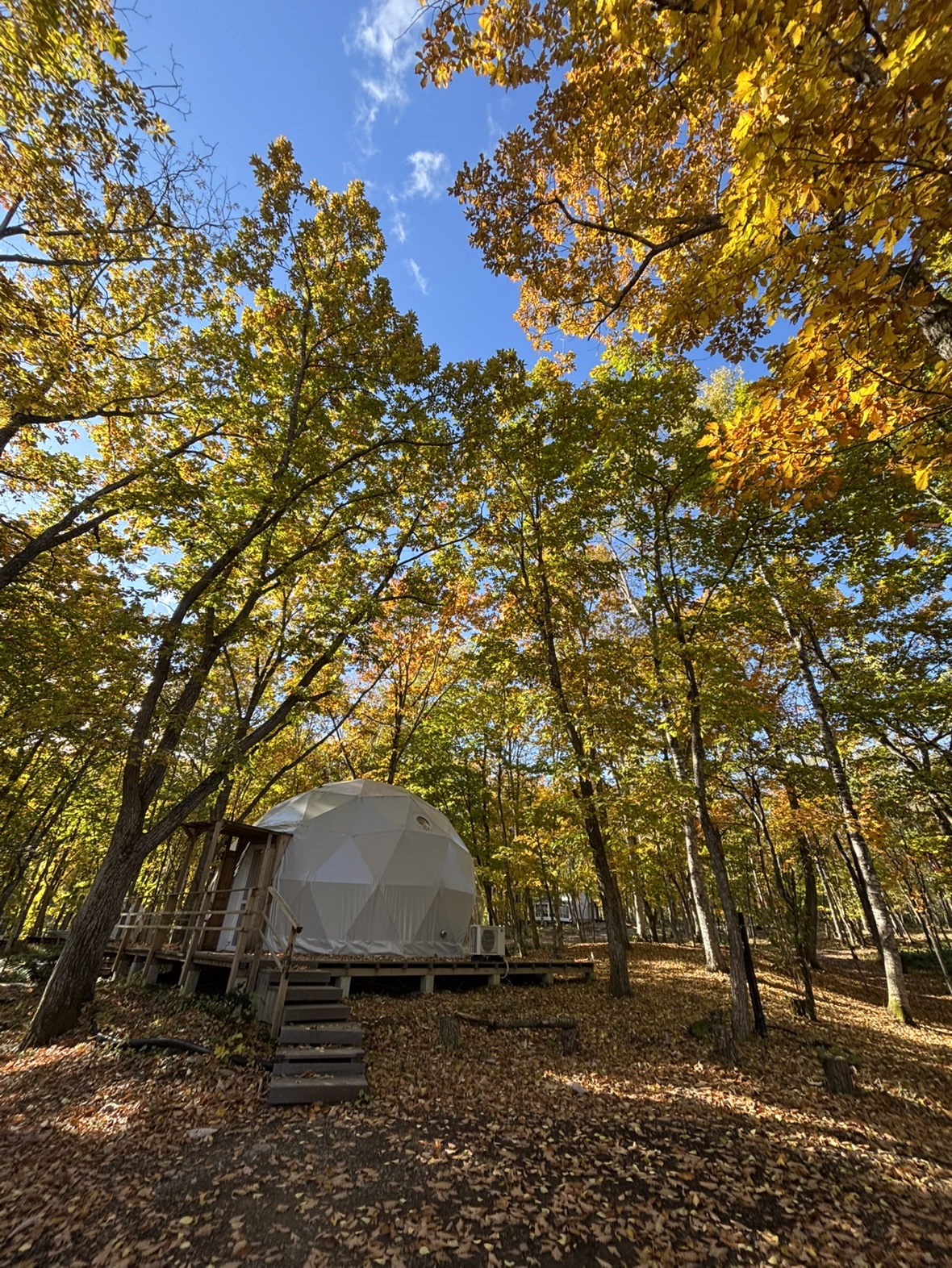 想像していたよりも森の中でしたが、テントの中はとっても暖かくて暖かい場所から綺麗な紅葉が見られるグランピングは最高でした。