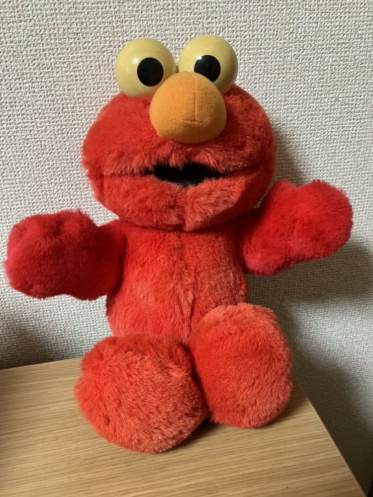 色褪せたエルモの人形も箱から出てきました。これは大学生の頃、私から夫に初めてプレゼントしたものです。